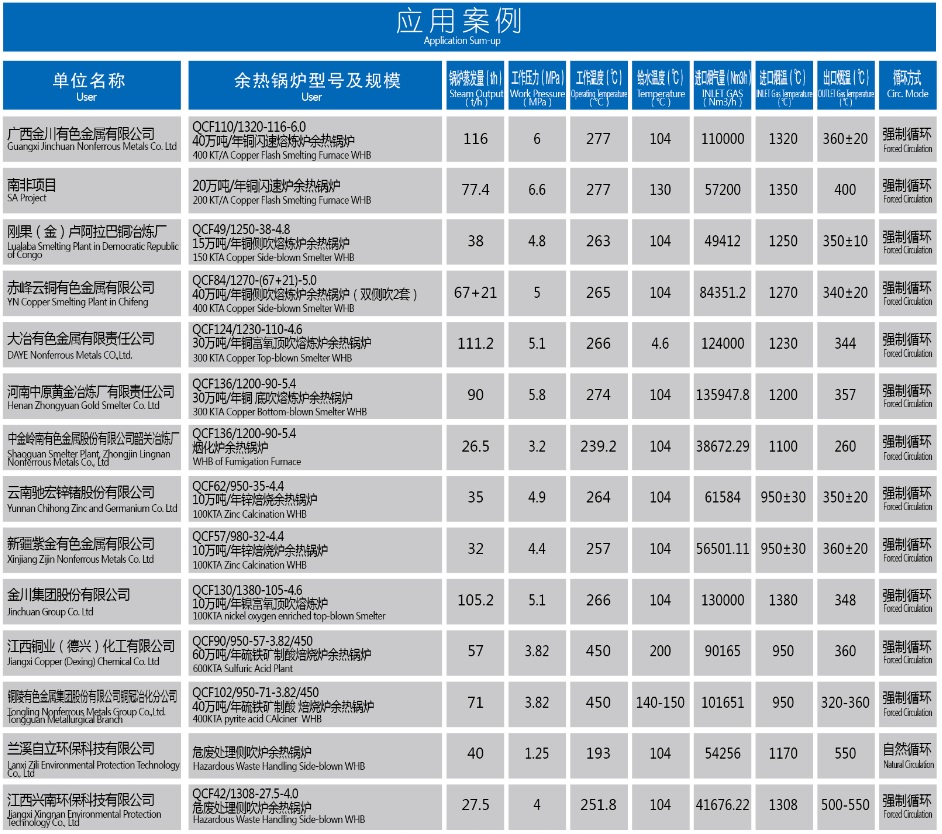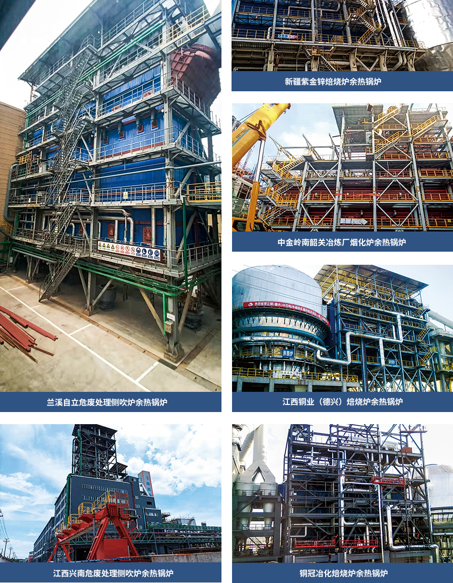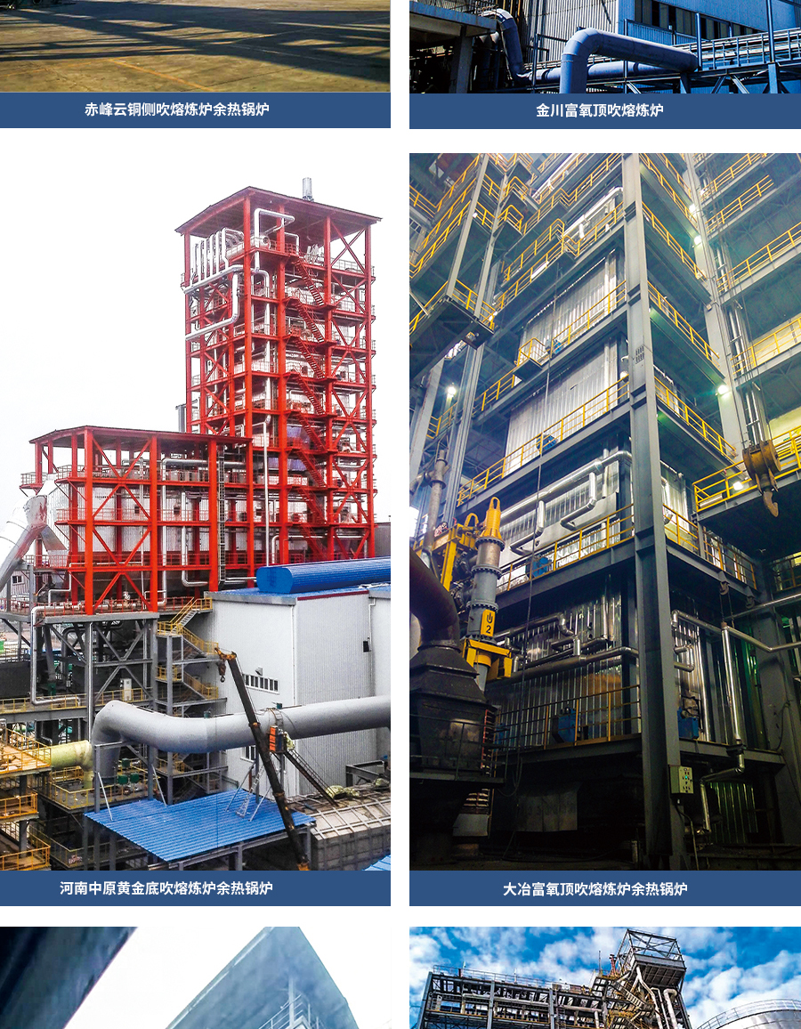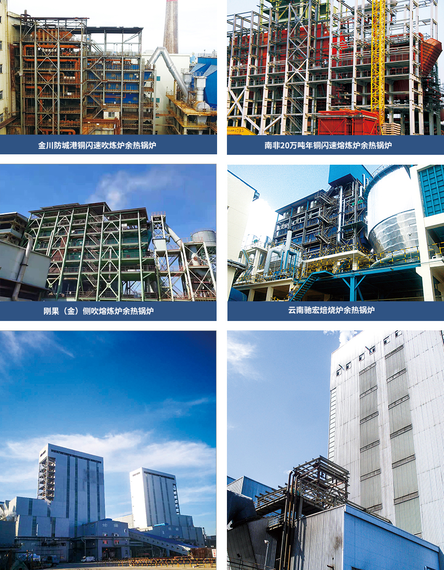 由我公司自主設(shè)計(jì)、制造、安裝的有色冶余熱鍋爐服務(wù)于國內(nèi)外各大有色冶煉企業(yè),如金川集團(tuán)、紫金礦業(yè)、江西銅業(yè)、中國銅業(yè)、云南錫業(yè)、馳宏鋅鍺等,有色市場(chǎng)占有率90%以上。我們的研發(fā)團(tuán)隊(duì)經(jīng)過多年潛心研究,形成的產(chǎn)品有: