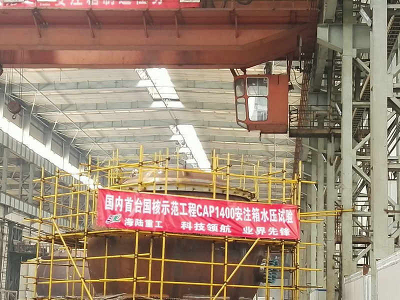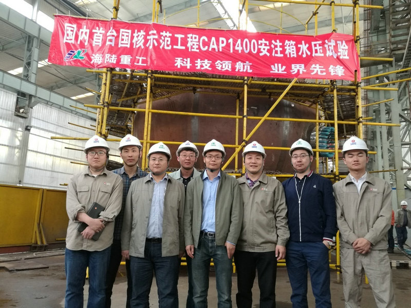 2017年4月25日16時(shí)20分,CAP1400示范工程1號機(jī)組首臺安注箱在海陸重工核電車間水壓試驗(yàn)順利完成!