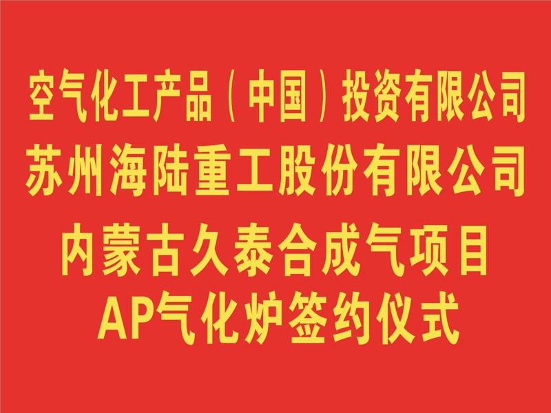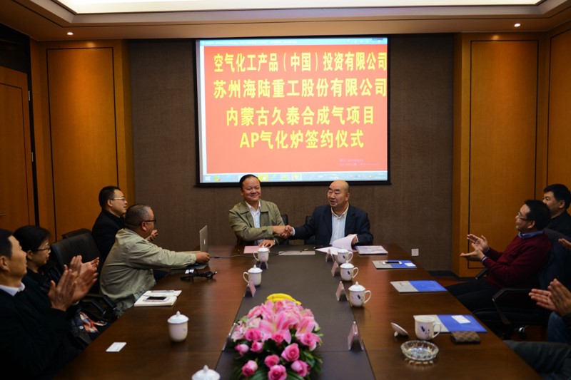2018年12月6日下午,在海陸重工會(huì)議室,空氣化工產(chǎn)品(中國(guó))投資有限公司與蘇州海陸重工股份有限公司,舉行久泰合成氣項(xiàng)目AP氣化爐簽約儀式,AP公司采購(gòu)總監(jiān)戴曉輝與海陸重工鍋爐事業(yè)部總經(jīng)理陳吉強(qiáng)分別在簽約書(shū)上簽字