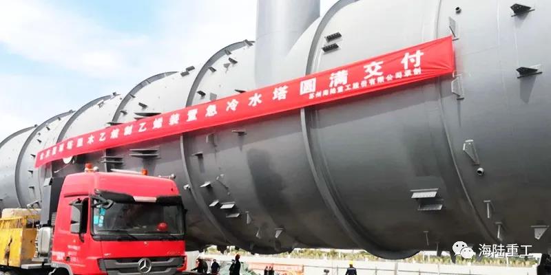 據悉,此次吊裝完工的超限設備-急冷水塔,內徑7200mm,長61.7m,重441噸,為總包方中國寰球工程有限公司北京分公司首臺安裝完工的超限設備。