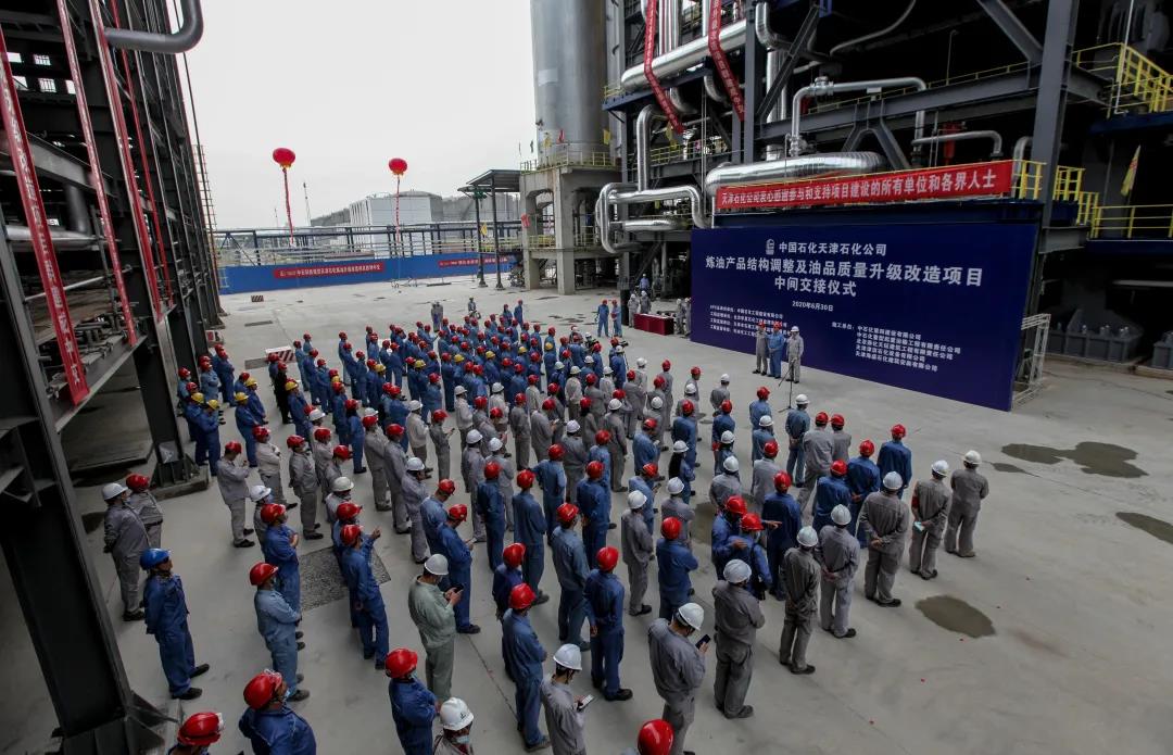 6月30日上午9點16分,天津煉油產(chǎn)品結構調(diào)整及油品質(zhì)量升級改造項目的中間交接儀式天津石化基地280萬噸/年催化裂化裝置區(qū)域隆重舉行。