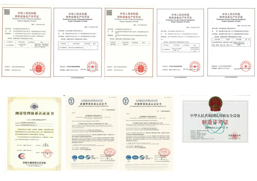 海陸制造與國際接軌,擁有資質居同行首列。公司現(xiàn)持有A級鍋爐、A1、A2、A3級壓力容器制造、設計許可證,美國ASME"S、U"鋼印授權證書及中國CCS、英國LR、德國GL、挪威DNV、法國BV等國內(nèi)外船級社的工廠認可證書。
