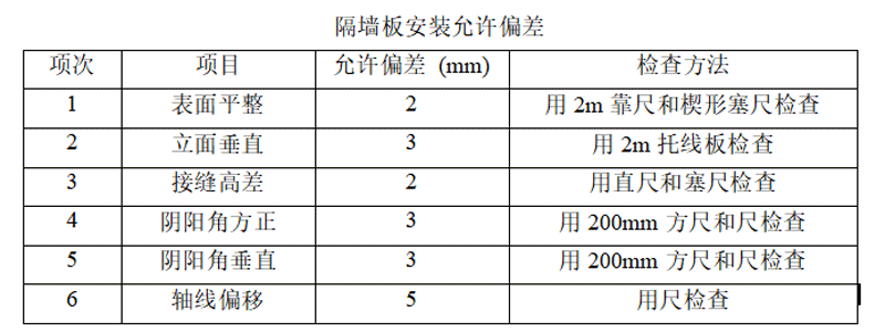 隔墻板安裝之前,必須經質檢人員驗收合格,向現場監理報告后,方可使用;